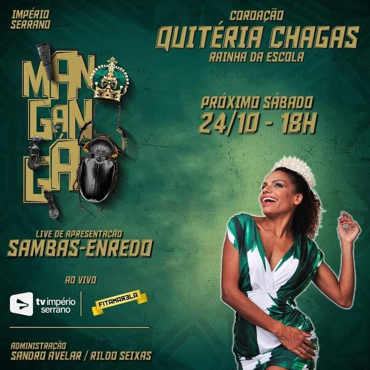 Quem é Rainha nunca perde a majestade! Quitéria Chagas retorna ao posto de Rainha da Escola, abrindo o desfile do Império Serrano no próximo Carnaval. A beldade, que reinou à frente da Bateria Sinfônica do Samba no último ano, será coroada no próximo sábado, 24, na Live de Apresentação dos Sambas-Enredo do Reizinho de Madureira.