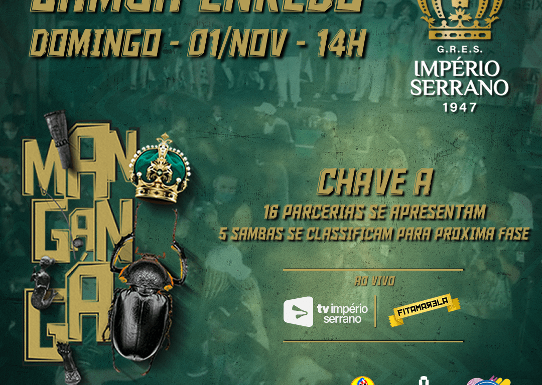 A eliminatória deste domingo, 01, começa às 14h e será a primeira de duas chaves, que levarão 10 sambas para a fase semifinal. No próximo Carnaval, o Império Serrano vai para a Marquês de Sapucaí o enredo Mangangá, de autoria do Carnavalesco Leandro Vieira.