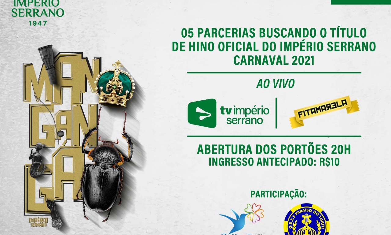 A Grande Final do Império Serrano acontecerá na próxima sexta-feira (20), a partir das 22h, com transmissão ao vivo da TV Império Serrano e Canal FitAmarela. Além dos sambas concorrentes, haverá show dos segmentos da escola e participação das coirmãs Beija-Flor de Nilópolis e Paraíso do Tuiuti. Os portões abrem às 20h e os ingressos antecipados custam R$10.