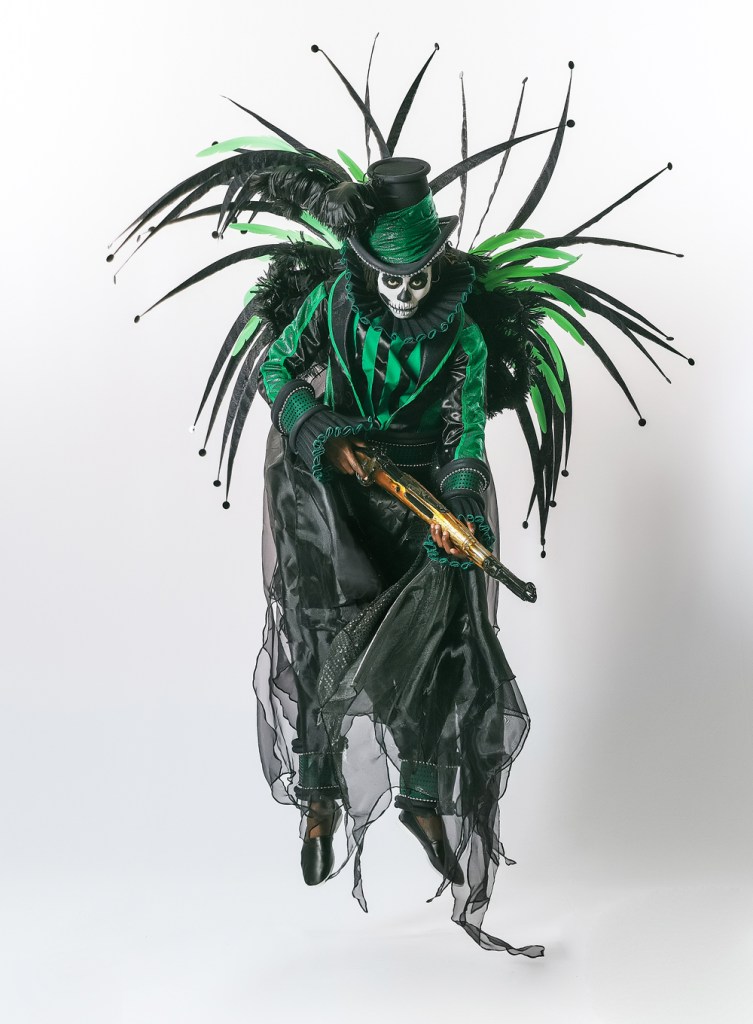 “De um modo geral as fantasias que desenvolvi são a apresentação visual dos ‘atores’ envolvidos na trama que me serve de enredo. Em desfile, os orixás que guardavam um homem que diziam ter ‘o corpo fechado’, a figura de Mestre Alípio (espécie de griot dos saberes da capoeira no Recôncavo da Bahia e mestre de Besouro), bem como a força bruta e violenta dos jagunços que atendiam aos desmandos de senhores de engenho descontentes com a abolição da escravatura” – define o carnavalesco.