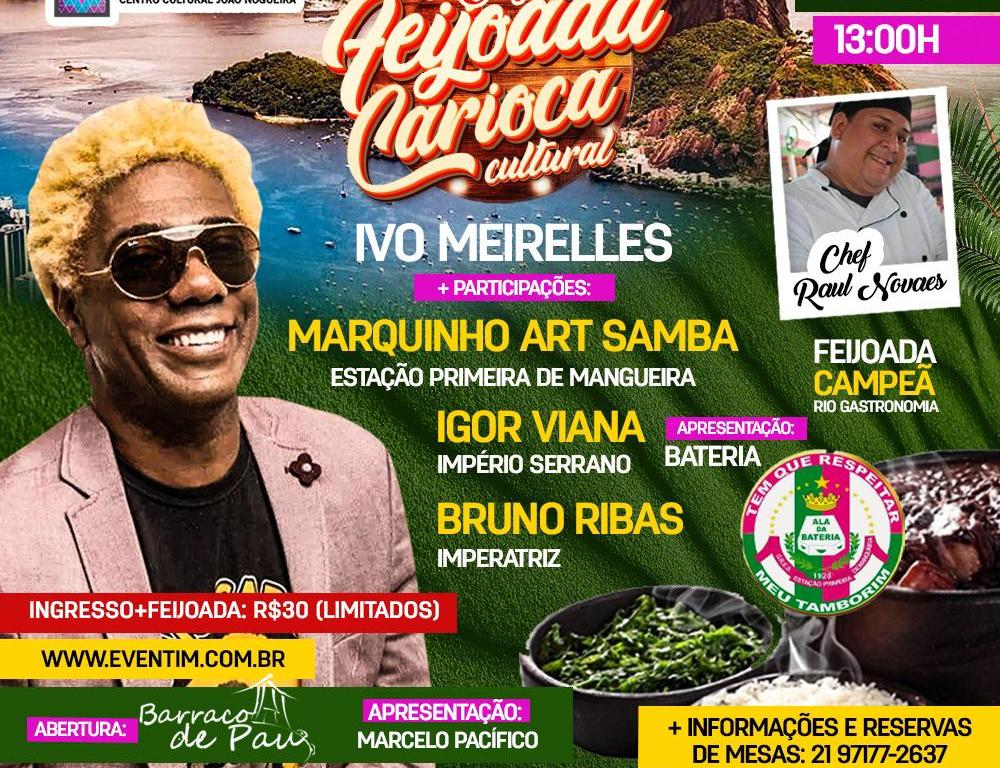 A 1ª Edição da Feijoada Carioca Cultura acontecerá do jeito que o carioca gosta. Carnaval, samba e o prato de feijão mais famoso e típico do país se unem na reabertura do Centro Cultural João Nogueira, o Imperator, no próximo sábado, dia 21 de agosto, a partir das 13h. O evento ainda contará com a participação de Ivo Meirelles, Bateria da Estação Primeira de Mangueira e intérpretes convidados.