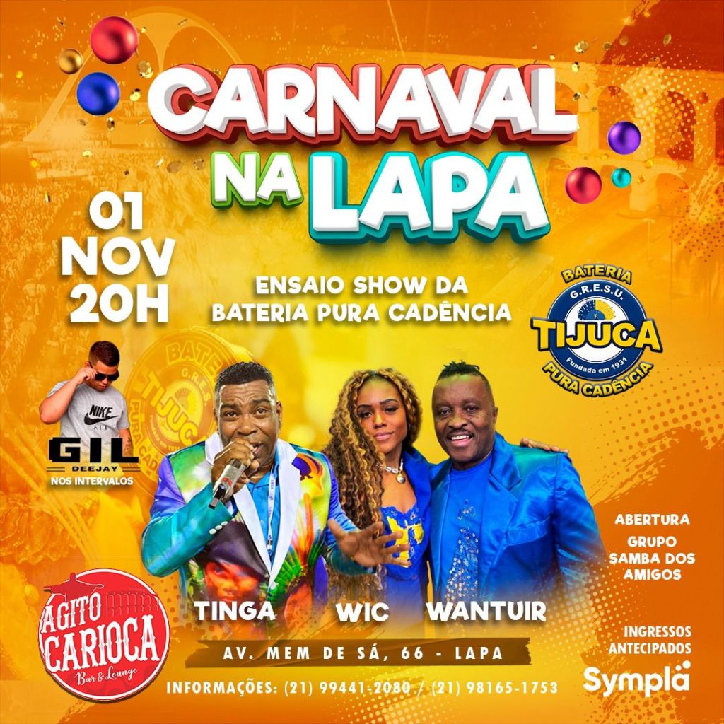 A véspera de feriado, 1º de novembro, será de muito samba na Lapa. Com a flexibilização dos eventos na cidade do Rio de Janeiro, a bateria Pura Cadência da Unidos da Tijuca realizará seu primeiro ensaio show rumo ao carnaval que se aproxima. O evento acontece a partir das 20h no Bar e Lounge Agito Carioca, localizado na Avenida Mem de Sá, 66, próximo aos Arcos da Lapa.