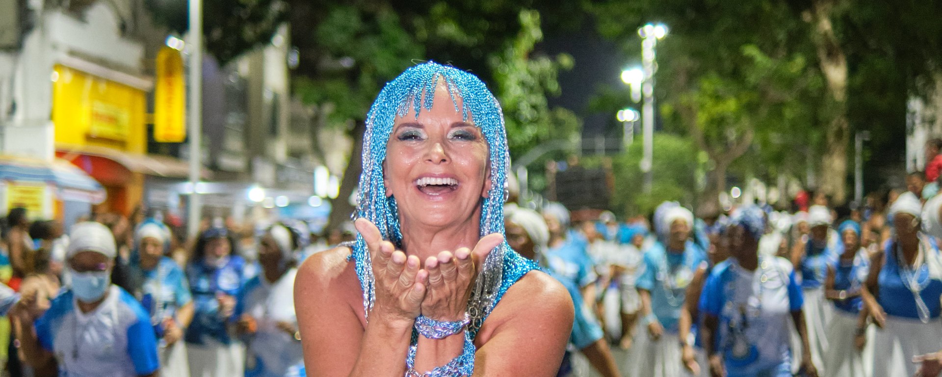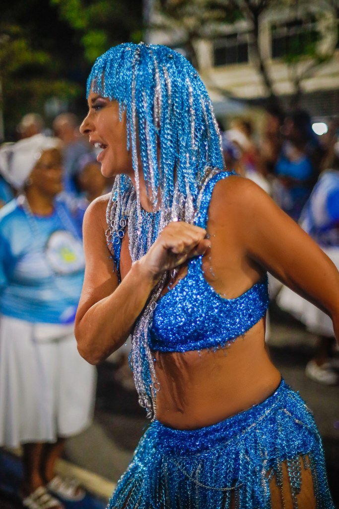 A empresária e paisagista Paula Bergamin, musa da Vila Isabel aos 60 anos, não poupa esforços em suas produções voltadas para a comunidade e o público da escola de samba do bairro de Noel Rosa. Na quinta-feira, quando a azul e branca retomou sua agenda de ensaios de rua para o Carnaval de 2022, superada a restrição devido à pandemia, Paula preparou um figurino especial para cruzar a Avenida Boulevard 28 de Setembro, tradicionalmente utilizada como palco do espetáculo a céu aberto da agremiação, junto da Marquês de Sapucaí.