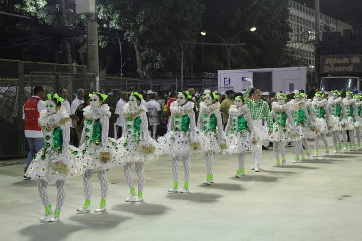Com o enredo ” Meninos, eu vivi… Onde canta o sabiá, onde cantam Dalva & Lamartine”, desenvolvido por Rosa Magalhães, falando sobre pierros e colombinas, a primeira a pisar na avenida foi a comissão de frente formada por bailarinas no meio um bailarino. Com cores predominantes no desfile amarelo e verde, a agremiação também teve bastante alas coreografadas.
