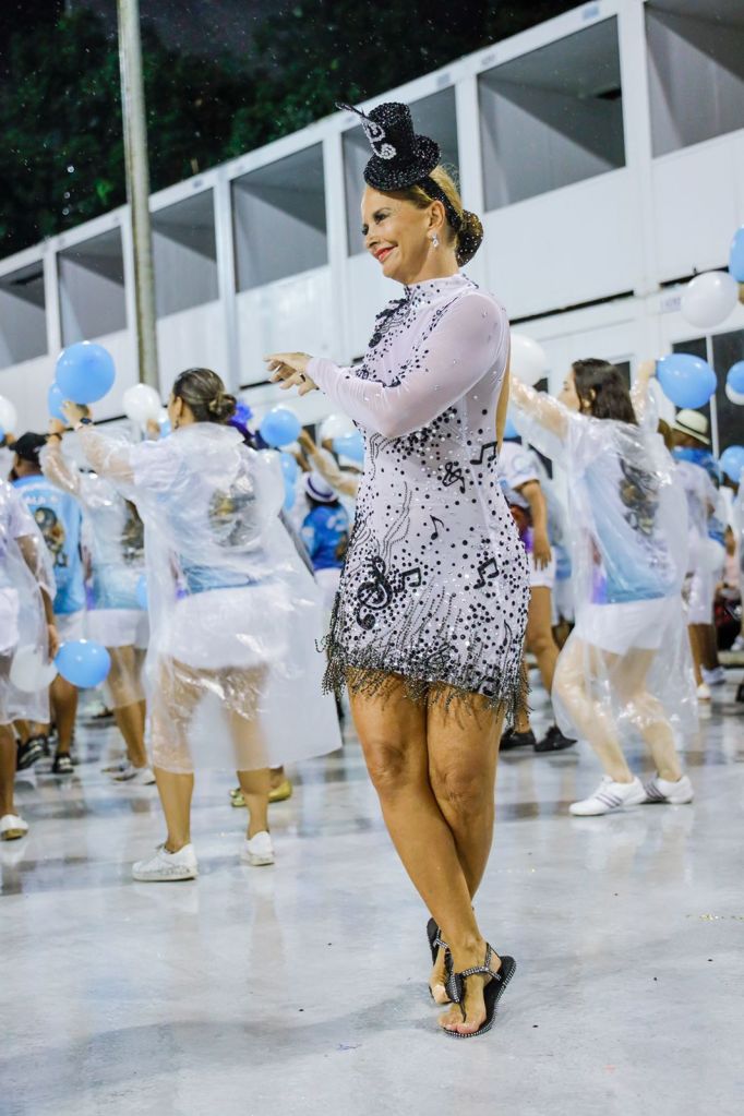 Se o samba for mesmo uma religião, como dizem, Paula Bergamin, 60, musa da Unidos de Vila Isabel, é inquestionavelmente uma devota. Para participar do ensaio técnico da azul e branca na Marquês de Sapucaí, na noite do último domingo, a empresária e paisagista decidiu, horas antes do treino, contrariar orientações médicas e cruzar o Sambódromo com o dedão do pé esquerdo imobilizado. Ela sofreu um acidente na véspera do evento e, ainda assim, não desistiu de se jogar no samba.