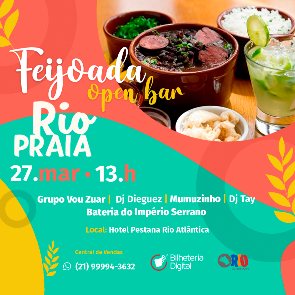Bilheteria Digital:https://www.bilheteriadigital.com/feijoada-rio-praia-27-de-marco