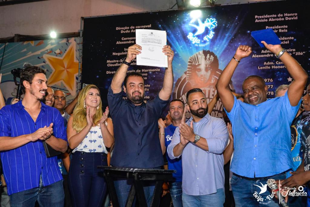 — A lei, na verdade, só oficializa e reconhece, com louvor e muito merecimento, a relevância dessa escola que tanto move os nilopolitanos e encanta todos que vão à Sapucaí ver os desfiles das agremiações — disse Castro durante o evento, quando foi presenteado com uma camisa do enredo deste ano (“Empretecer o pensamento é ouvir a voz da Beija-Flor”).