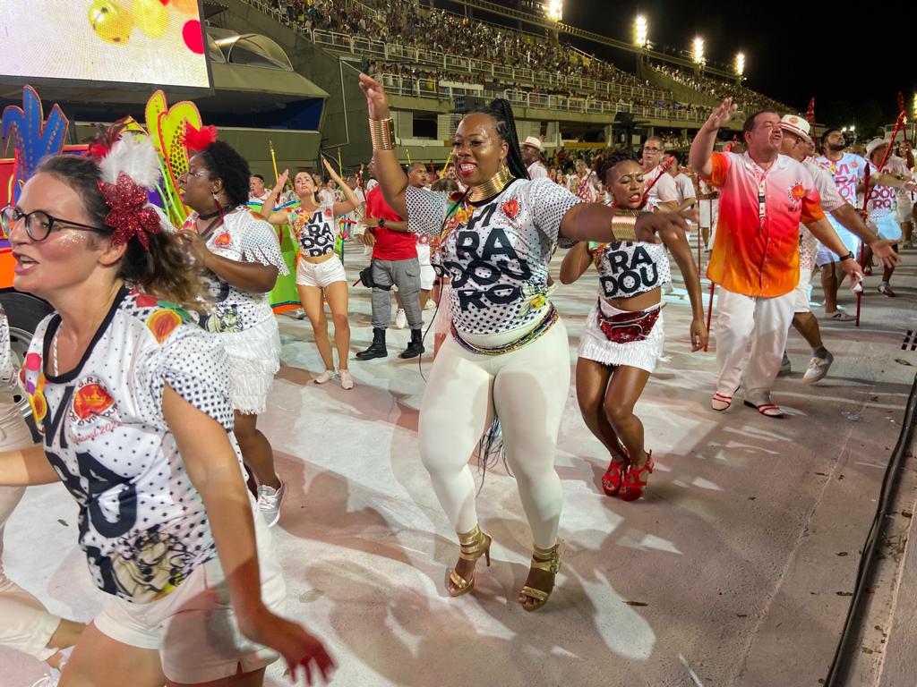 Joy Broussard participou do teste de luz e som, na lavagem da Sapucaí com a Viradouro e neste sábado estará no último ensaio de rua da Vigário Geral, em contato com a comunidade já se preparando para o grande dia do desfile oficial na Marquês de Sapucaí.A maratona da Norte-americana começa no próximo dia 21 de abril, quinta-feira, quando desfila primeiro na Intendente Magalhães com a Império da Zona Norte, depois vai correndo para a Sapucaí, para o desfile da Vigário Geral. No dia seguinte, sexta-feira 22, atravessa a avenida com a Unidos do Viradouro e espera poder voltar com a Vermelho e Branco no desfile das campeãs.