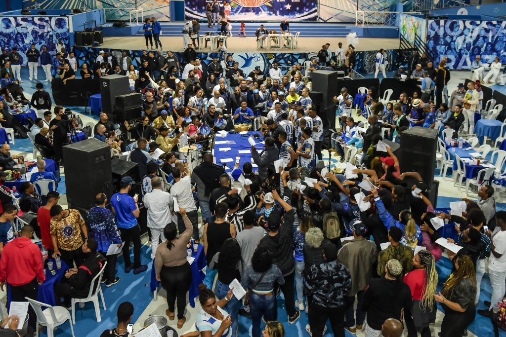 Tanto a inscrição quanto a primeira apresentação das obras aconteceram nesta quinta-feira, 11, na quadra da escola, em Nilópolis. A exibição de cada composição se deu em duas passadas, numa roda de samba comandada pelos mestres de bateria Plínio e Rodney.