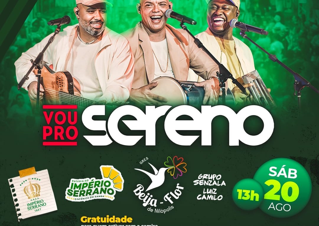 Atrações: Vou Pro Sereno, Beija-Flor de Nilópolis, Império Serrano, Grupo Senzala e Luiz Camilo