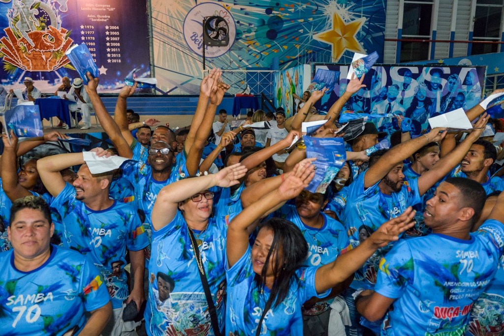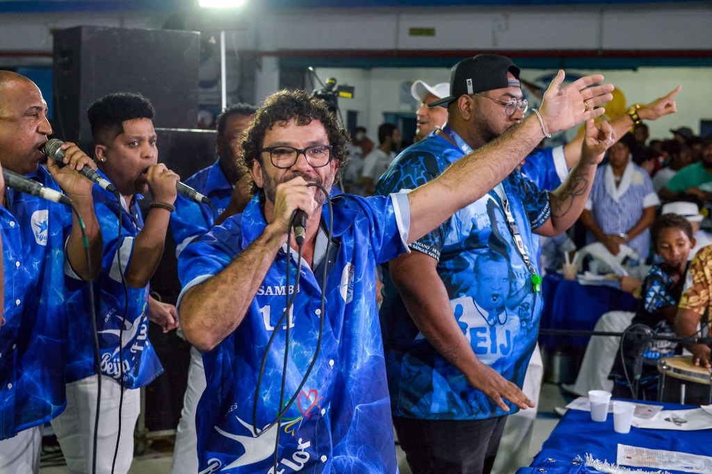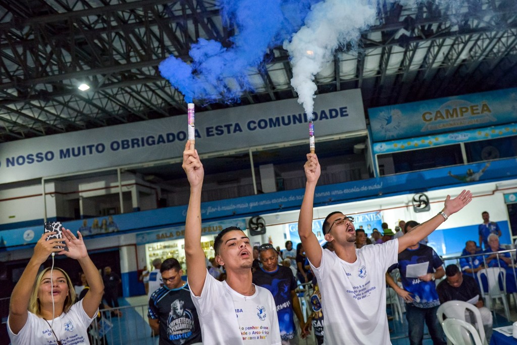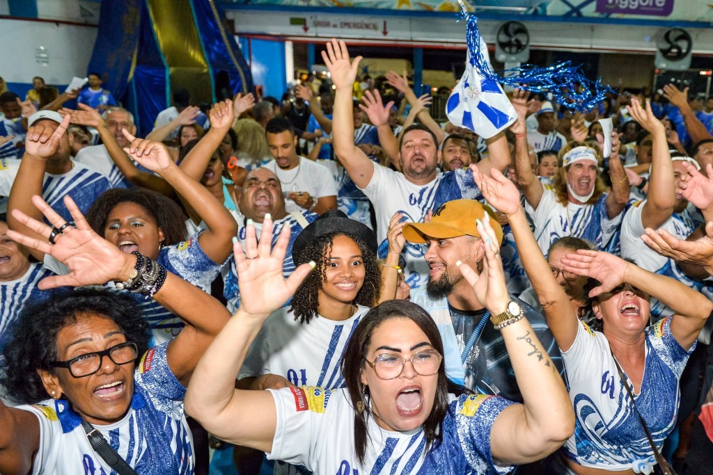 Em eliminatória realizada nesta quinta-feira (25), em formato de roda de samba, na quadra da agremiação, a azul e branca eliminou as composições de número 02, 30 e 69.