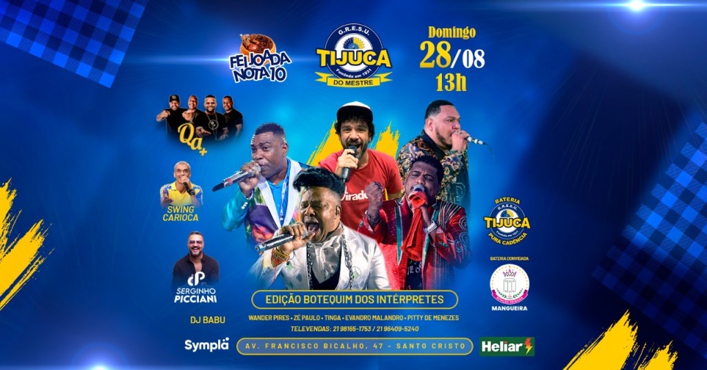 No próximo domingo (28), a Unidos da Tijuca abre suas portas para receber mais uma edição de sua feijoada mensal recebendo o botequim dos intérpretes formado por Wander Pires, Zé Paulo Sierra, Tinga, Evandro Malandro, Pitty de Menezes e a bateria da Estação Primeira de Mangueira.