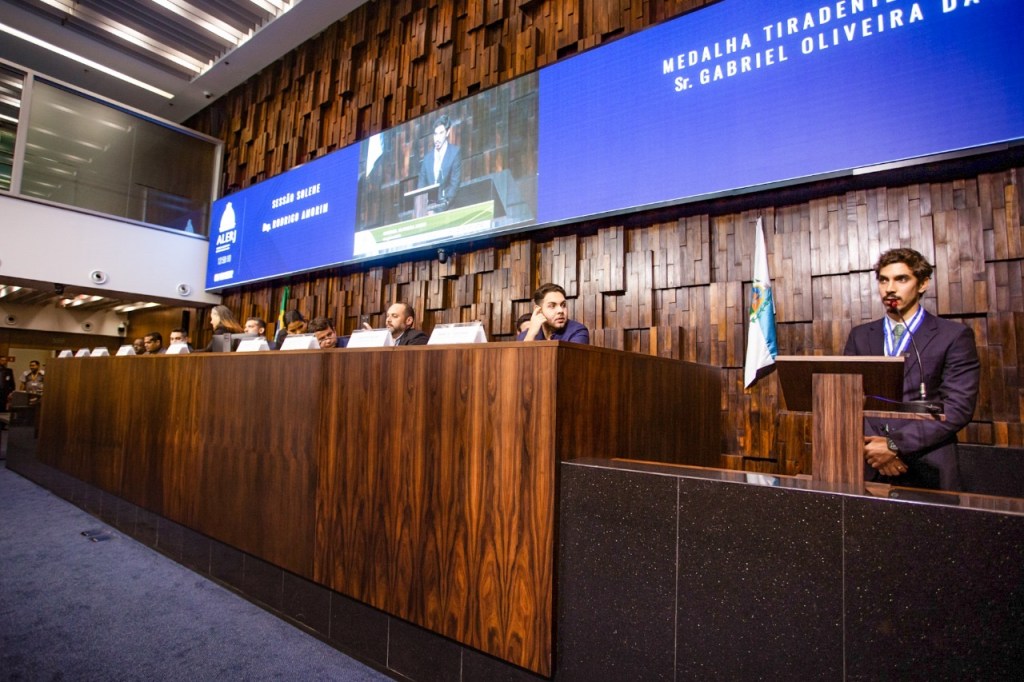 A Assembleia Legislativa do Rio (Alerj) concedeu a Medalha Tiradentes, a maior comenda do estado, ao empresário Gabriel David, diretor de Marketing responsável pelos desfiles das escolas de samba do Rio de Janeiro. A entrega da honraria aconteceu nesta quarta-feira, 5, durante sessão presidida pelo deputado Rodrigo Amorim (PTB), autor da homenagem aprovada pela Casa. Gabriel tem 24 anos e está entre os mais jovens agraciados com o título.