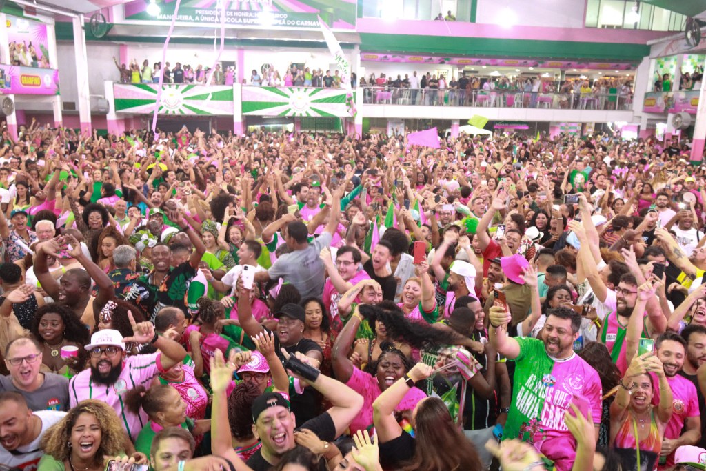 Após três anos sem escolhas de samba por conta da pandemia, a comunidade se fez presente na quadra da agremiação, prestigiando a verde e rosa.