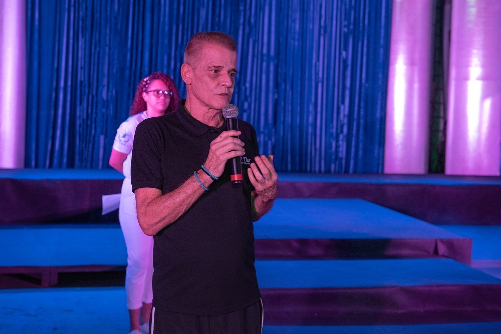 – O que a Beija-Flor tem de mais forte é o seu povo e queremos que esse povo brinque o Carnaval com alegria na pista. Eu e o meu mentor e parceiro Alexandre Louzada criamos essas fantasias pensando em vocês – disse André à comunidade presente. O artista também fez questão de agradecer e chamar ao palco todos os profissionais envolvidos na construção dos protótipos.