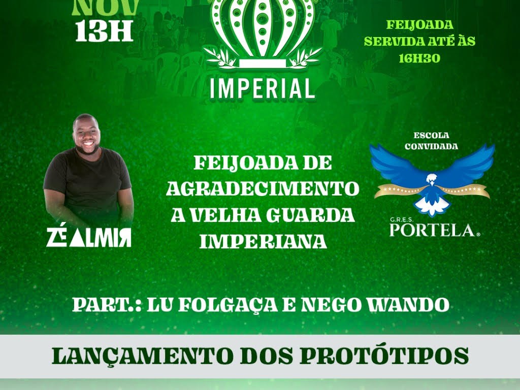 No dia 20/11, domingo, O G.R.E.S.E Império da Tijuca, apresentará para toda a sua comunidade e amigos os seus protótipos de fantasias para o Carnaval de 2023, em uma tarde regada de muito feijão, alegrias e alusão ao enredo para o seu próximo desfile: “Cores do Axé”, de desenvolvimento dos carnavalescos Júnior Pernambucano e Ricardo Hessez.
