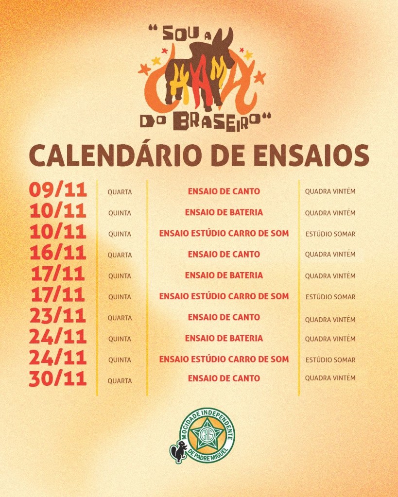 Chegou o mês de novembro, e com ele o pontapé inicial da Mocidade Independente nos ensaios preparatórios para o próximo desfile. A agremiação realizará três modalidades diferentes de treinos antes de reunir todos os segmentos. O objetivo é alinhar tecnicamente cada quesito para um desempenho de excelência em fevereiro.