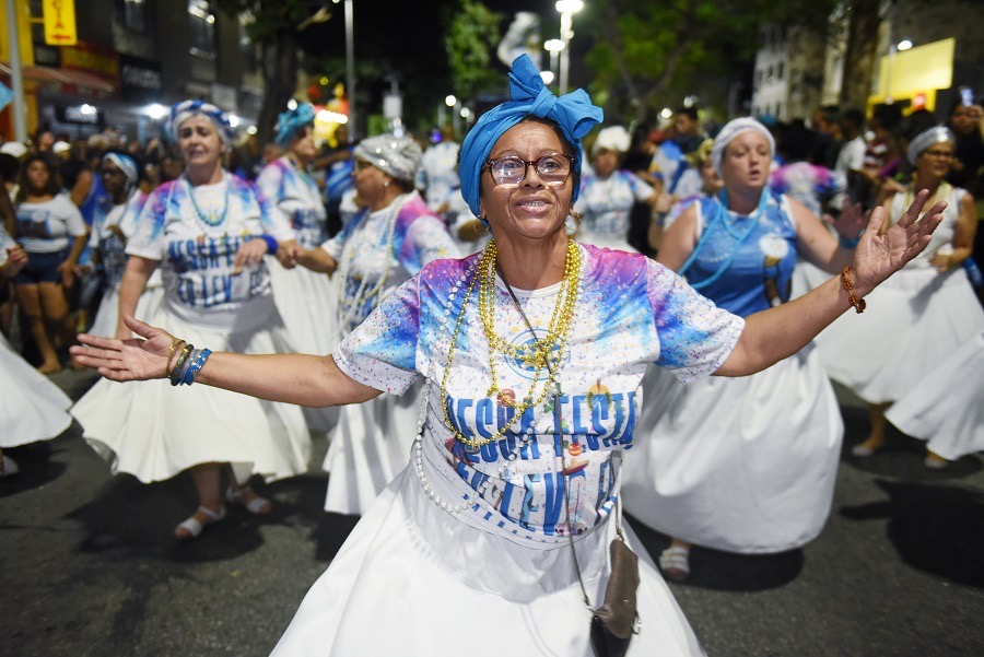 Quem também preparou uma apresentação exclusiva para o momento foi o primeiro casal de mestre-sala e porta-bandeira, Marcinho Siqueira e Cristiane Caldas. A dupla arrancou muitos aplausos dos espectadores, assim como baianas, passistas e membros da velha-guarda.