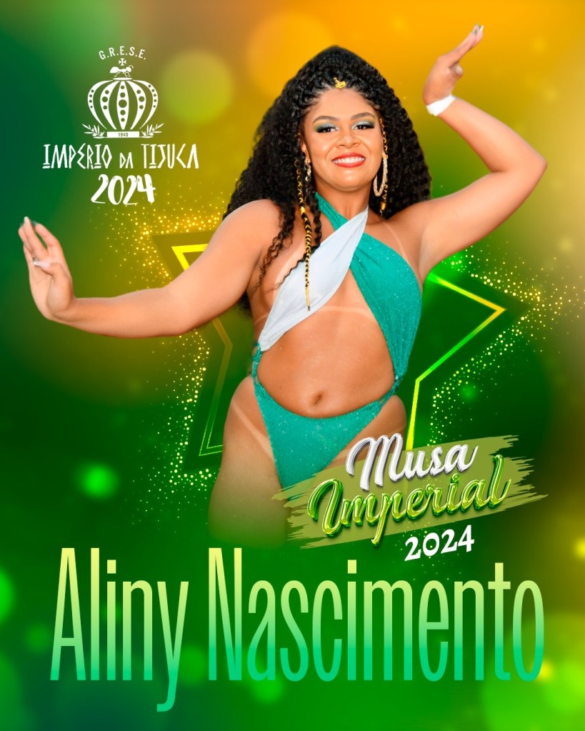 O Império da Tijuca promoveu Aliny ao time de musas da verde e branca da Formiga. Natural do Espírito Santo e criada na Tijuca, a nova musa que é professora e desfila desde 2018 na ala de passistas foi campeã do concurso Musa Imperial e brilhará em posição de destaque no Carnaval 2024.