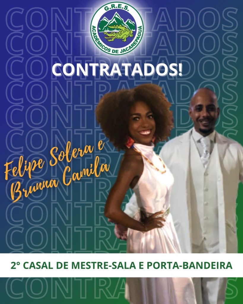 O Acadêmicos de Jacarepaguá anunciou a chegada do 2º casal de mestre-sala e porta-bandeira. Felipe Solera e Brunna Camila defenderão o segundo pavilhão da agremiação no carnaval de 2024. Será a estreia da dupla, que irá compor o quadro de casais da escola no próximo desfile.