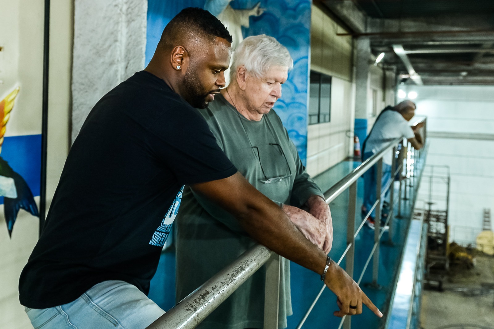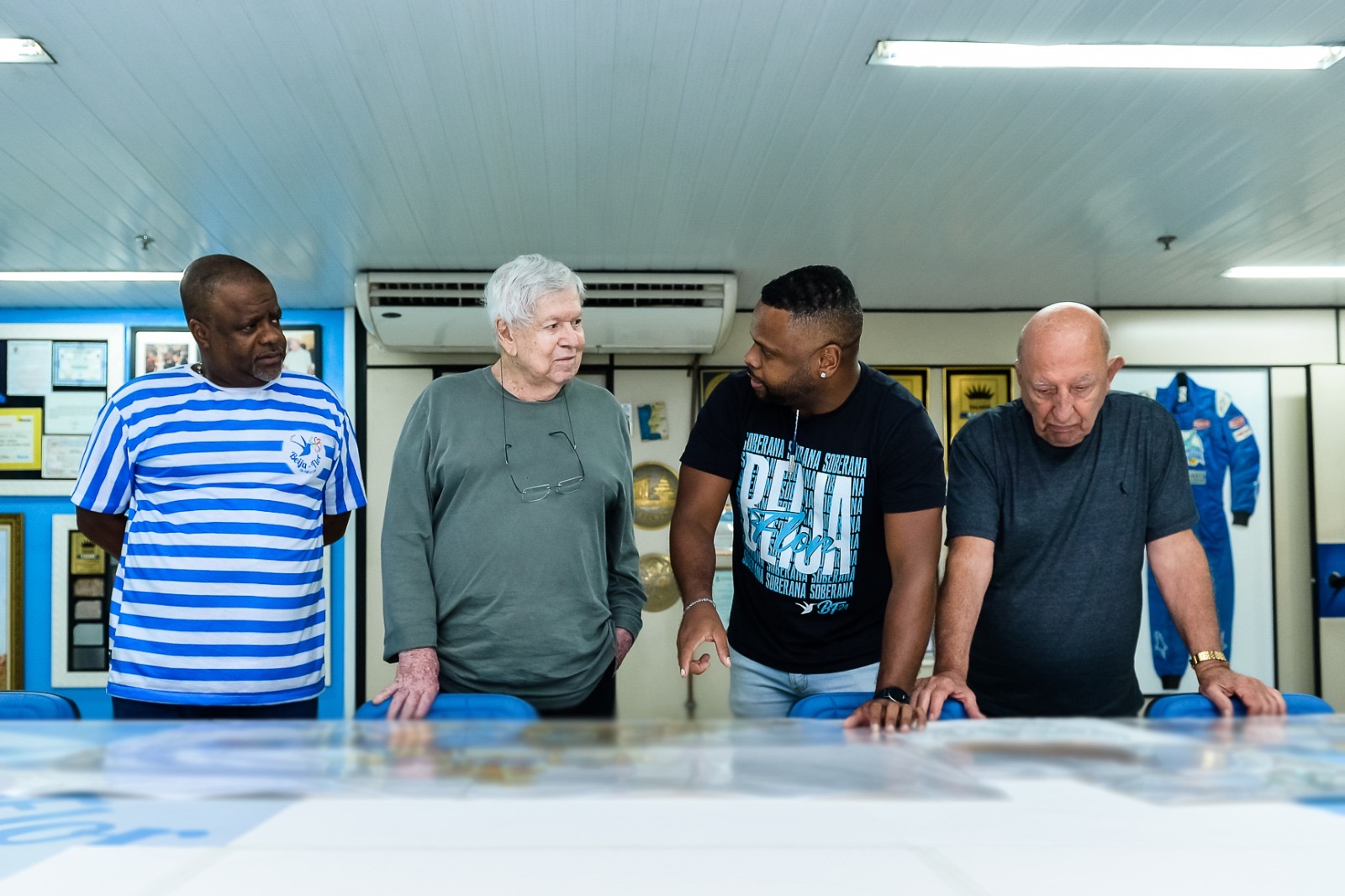 Acompanhado do carnavalesco da escola, João Vitor Araújo, responsável pela criação do desfile, do presidente de honra, Anísio Abrahão David, e do presidente da agremiação, Almir Reis, Boni pôde conhecer os detalhes das fantasias e alegorias que estão sendo desenvolvidas na escola.