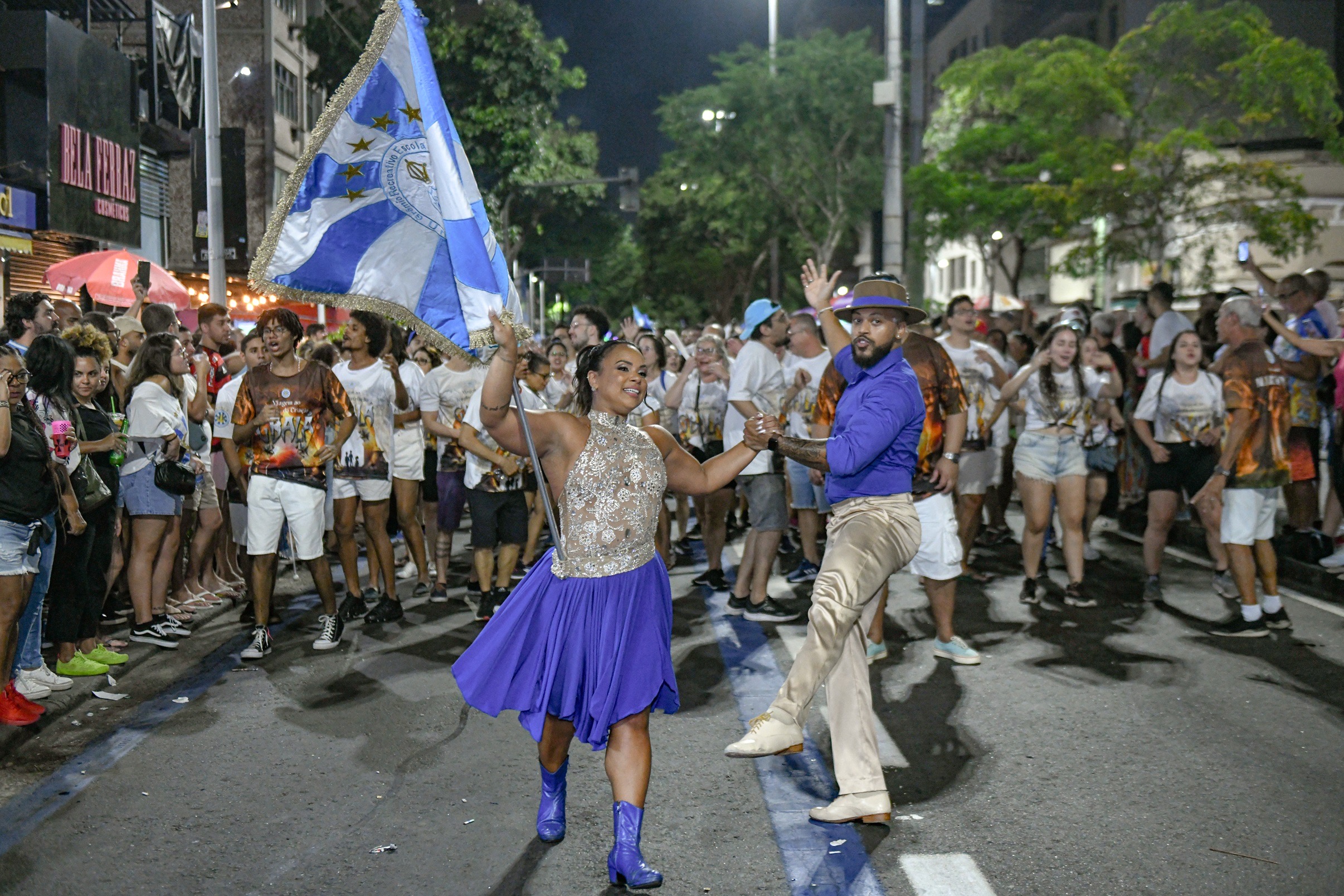 Quem também mostrou que está no caminho certo para a folia é a comunidade, que cantou com muita energia o samba-enredo de Martinho da Vila, interpretado por Tinga e os músicos do carro de som. Já o primeiro casal de mestre-sala e porta-bandeira, Marcinho Siqueira e Cristiane Caldas, compartilhou com os foliões um pouco da preparação para o desfile.