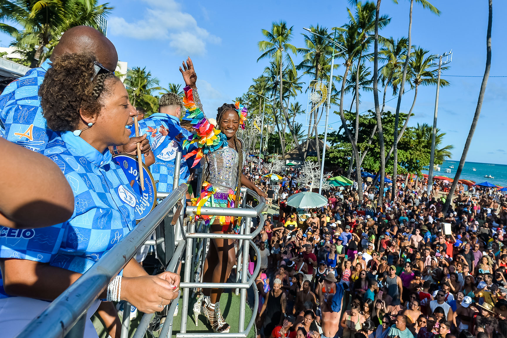 A Beija-Flor de Nilópolis deu o pontapé inicial no novo ano com um espetáculo para os maceioenses. Neste primeiro dia de janeiro, a escola de samba carioca encantou uma multidão com uma apresentação especial em um trio elétrico que percorreu a orla da cidade.