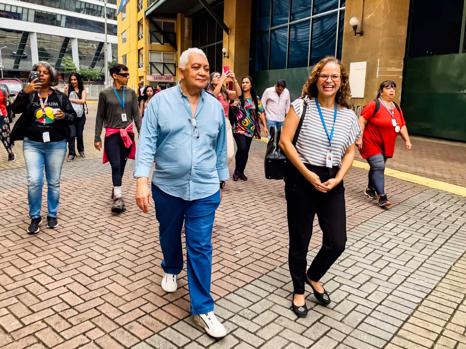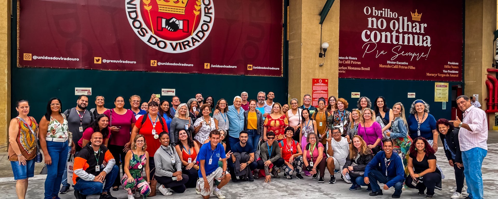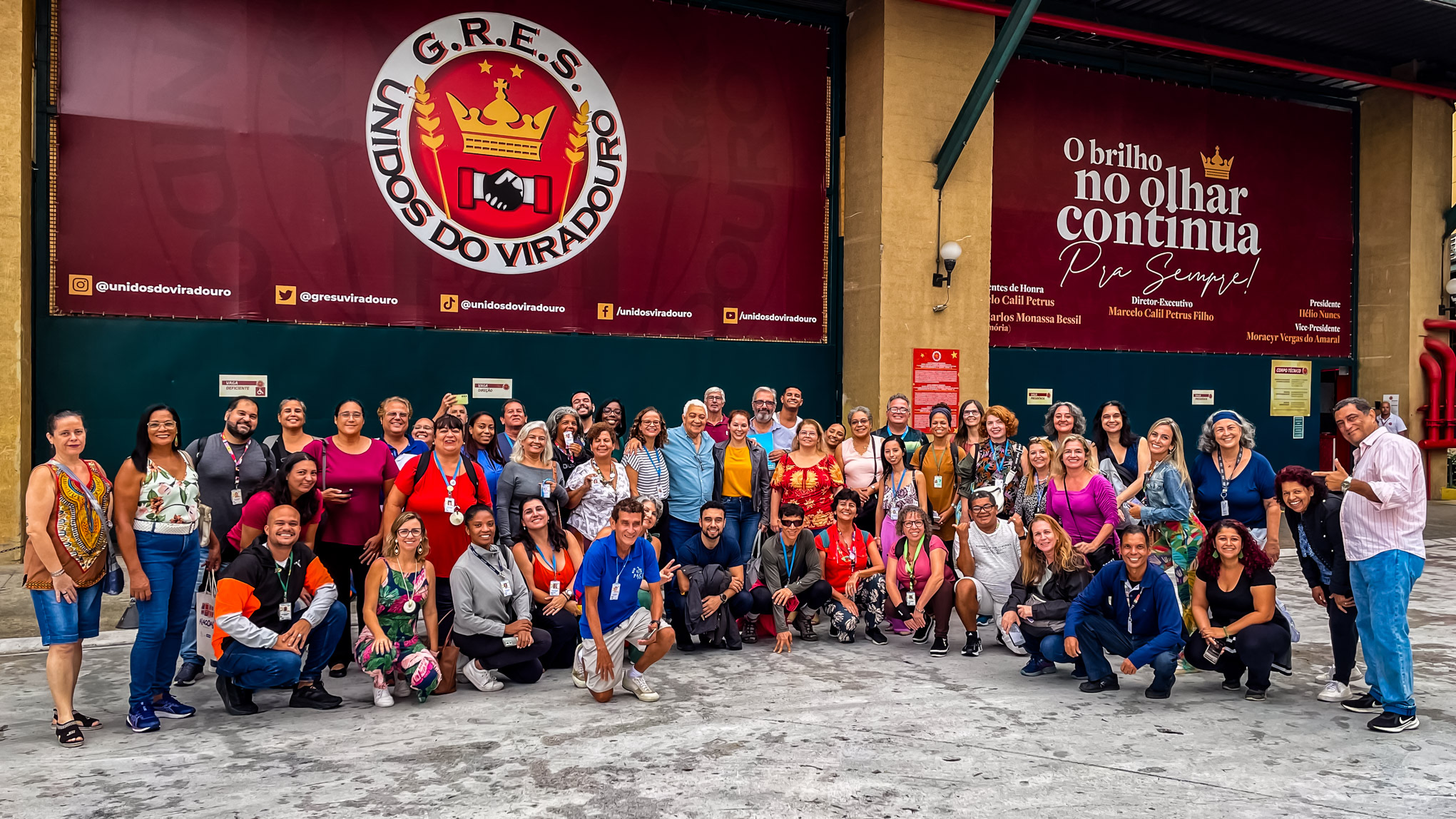 Após conversar com os dirigentes na plenária, conhecendo um pouco mais sobre as escolas de samba do Grupo Especial e o funcionamento do espaço, os alunos foram convidados a visitar o barracão da atual campeã, Unidos do Viradouro.