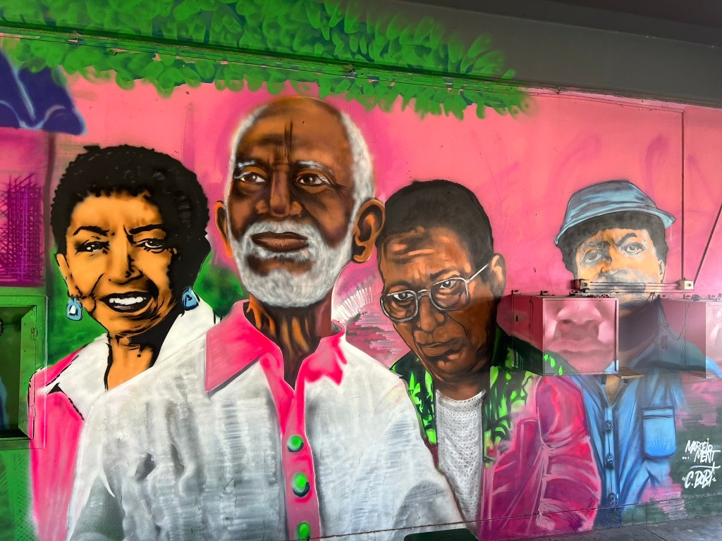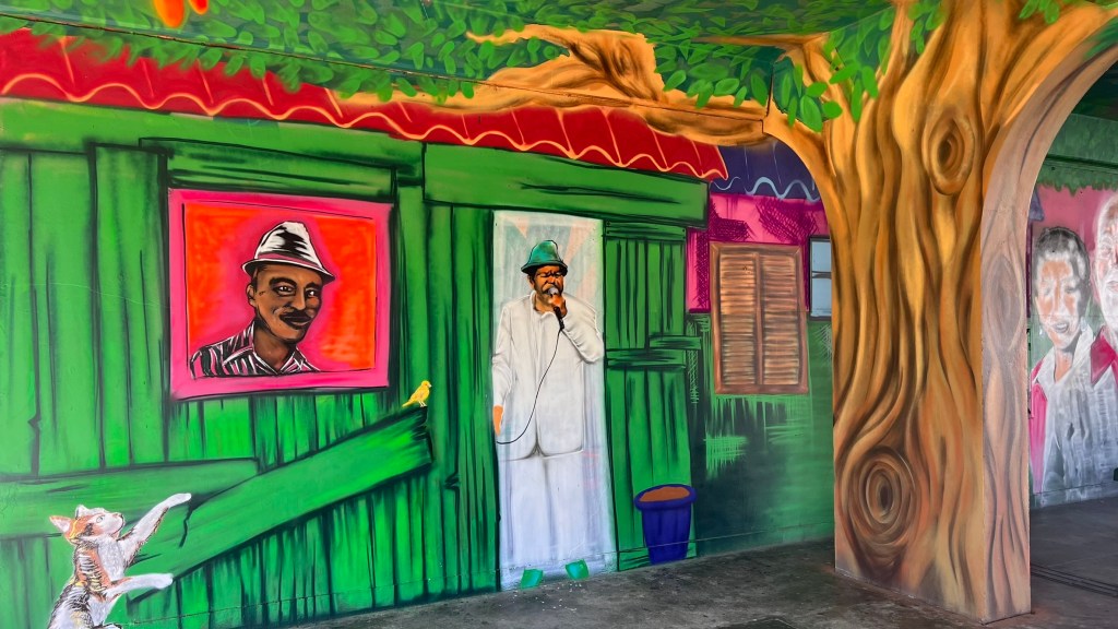 Ao lado de Marcelo nesta arte urbana estão os artistas Fael Tujaviu, Múmia, Sílvio e Annyvi, a primeira mulher grafiteira do Complexo do Alemão.