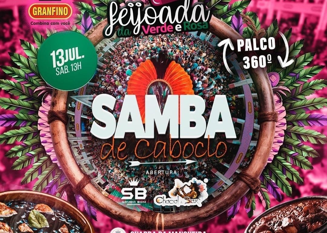 RIO DE JANEIRO – No próximo sábado (13/7), a Estação Primeira recebe na Feijoada Verde e Rosa o Grupo Samba de Caboclo. Apostando no formato com o palco 360°, essa edição permitirá ao público uma interação maior com os músicos e com toda energia que envolve o palco para celebrar a cultura afro-brasileira com o melhor da roda de samba.