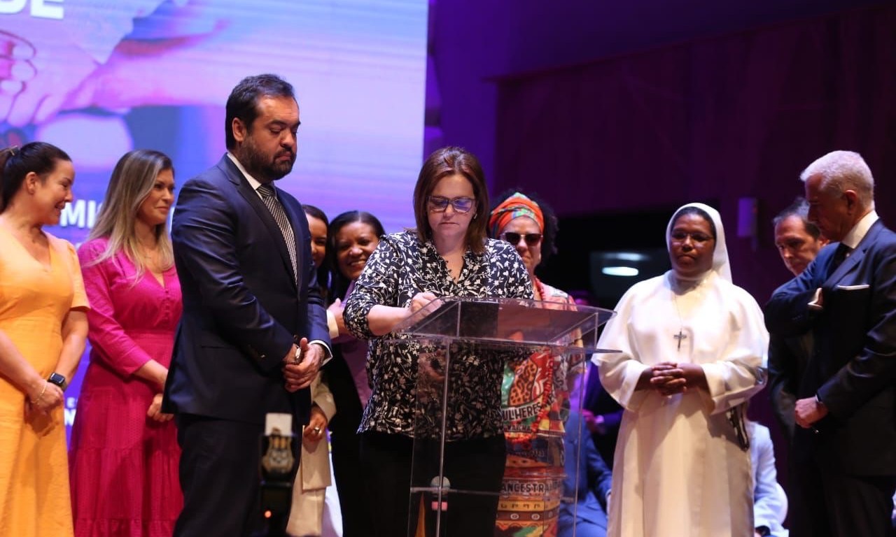 O evento também celebrou os 5 anos da Patrulha Maria da Penha e a assinatura do decreto que estabelece diretrizes para a contratação de percentual mínimo de mulheres em situação de violência doméstica e familiar.