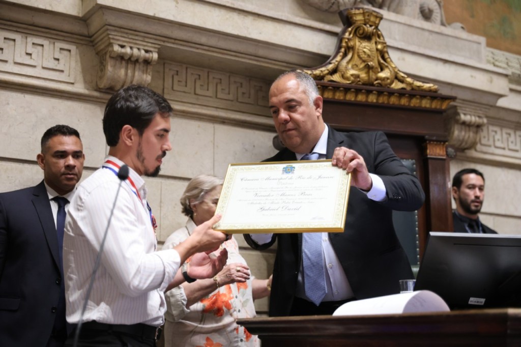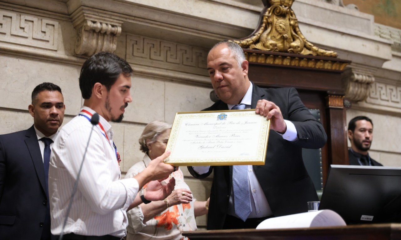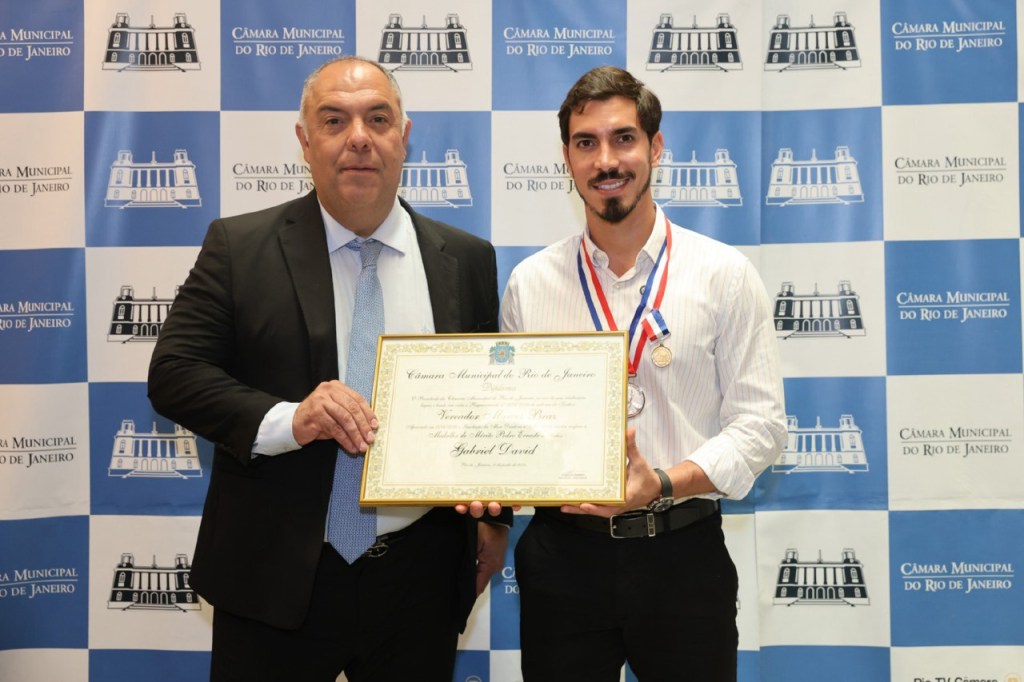 Na manhã desta segunda-feira (30), Gabriel David, presidente da Liga Independente das Escolas de Samba do Rio de Janeiro (Liesa), foi condecorado com a Medalha Pedro iErnesto, a mais alta honraria concedida pela Câmara Municipal do Rio de Janeiro. A iniciativa da homenagem partiu do vereador Marcos Braz, reconhecendo a relevância de David na condução do carnaval carioca e na preservação da cultura do samba.