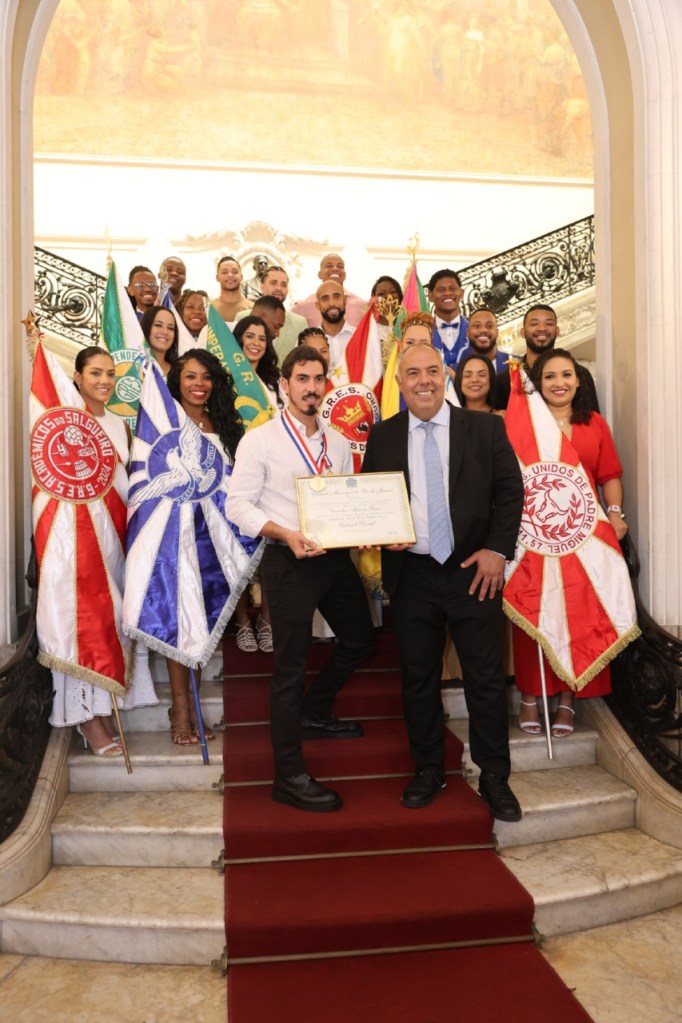 A Medalha Pedro Ernesto, criada em 1980, é um símbolo de reconhecimento a cidadãos que prestam relevantes serviços à cidade do Rio de Janeiro. Gabriel David, emocionado, agradeceu a honraria, dedicando-a a todos que trabalham incansavelmente pelo sucesso do carnaval. “O samba é a alma do Rio, e essa homenagem é, na verdade, para todos os sambistas que fazem o espetáculo acontecer ano após ano”, declarou.