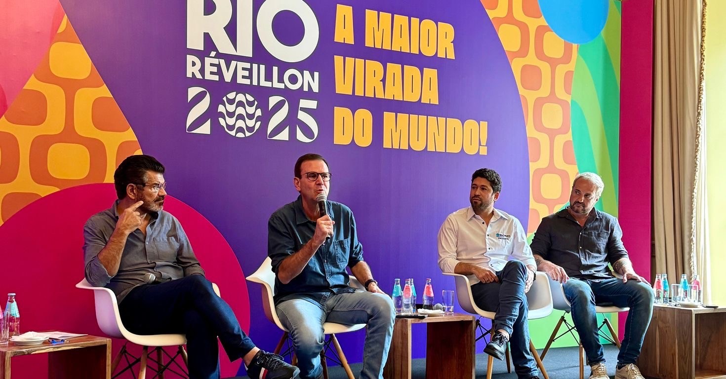 A Prefeitura do Rio apresentou, na manhã desta sexta-feira (22/11), as novidades para o Rio Réveillon 2025. Na coletiva no Palácio da Cidade, em Botafogo, o prefeito Eduardo Paes, o presidente da Riotur, Patrick Corrêa, e o vice-presidente de Criação da SRCOM, Abel Gomes, anunciaram que esta edição terá três palcos em Copacabana: o palco Leme está de volta, com a estreia da música gospel no evento, além do Palco Rio (palco principal, que será majoritariamente em LED) e o palco Samba (no formato de um pandeiro).