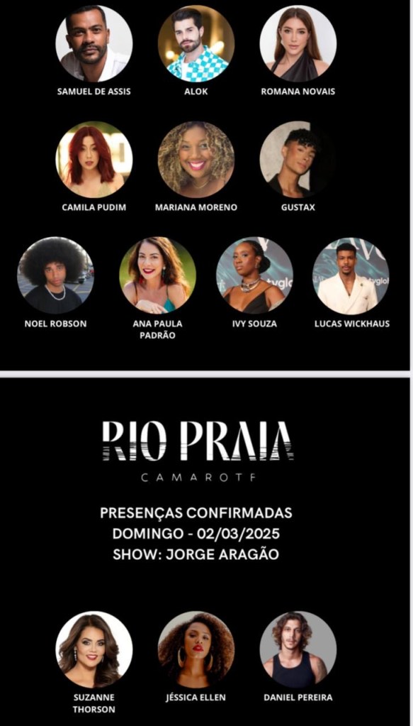 Entre os convidados confirmados estão grandes nomes como o DJ Alok, a influenciadora Romana Novais, o ator Samuel de Assis, a apresentadora Ana Paula Padrão, além de figuras conhecidas do meio digital, como Camila Pudim, Mariana Moreno, Gustax, Noel Robson, Ivy Souza e Lucas Wickhaus. Suzanne Thorson, Jéssica Ellen e Daniel Pereira também marcam presença para abrilhantar ainda mais a noite.