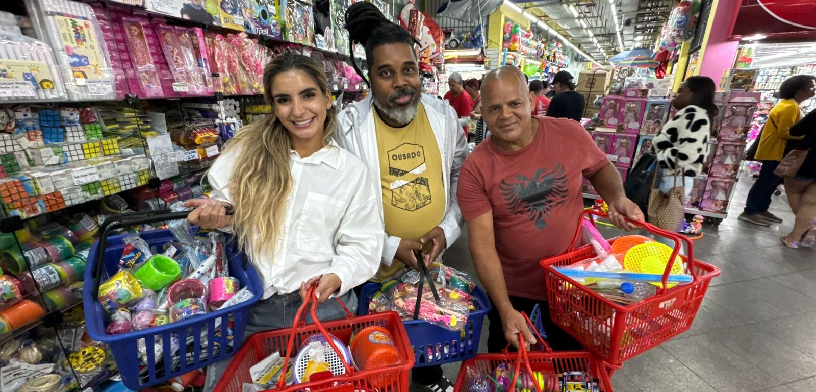 A partir das 14h, a quadra da escola abre as portas para brincadeiras, dança, distribuição de doces e brinquedos. A dupla espera receber cerca de 500 crianças da comunidade.