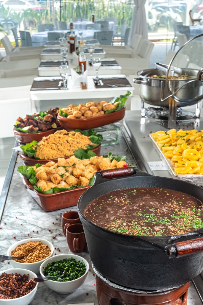 O evento oferece bebidas inclusas, como chopp Amstel, batidas diversas, caipirinha de limão, água, suco e refrigerante. A feijoada é preparada com todo o cuidado e sabor que a ocasião pede e apresenta uma variedade de carnes salgadas como: carne seca, lombinho suíno, linguiça, paio, bacon, costela de porco. Além das guarnições: torresmo, farofa, couve mineira e arroz branco. Também é oferecida uma Estação de Saladas para dar início aos trabalhos. E para fechar em grande estilo, uma Mesa de Sobremesas para quem não abre mão do doce após o almoço com opções bem deliciosas.