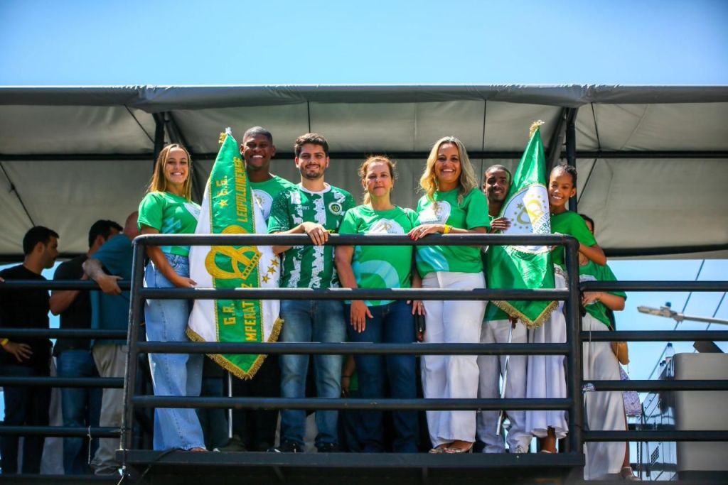 Animando o domingo, o evento ainda contou com DJ, distribuição de bolo e, claro, uma super apresentação da bateria e segmentos da verde, branco e dourado, nove vezes campeã do Carnaval carioca.