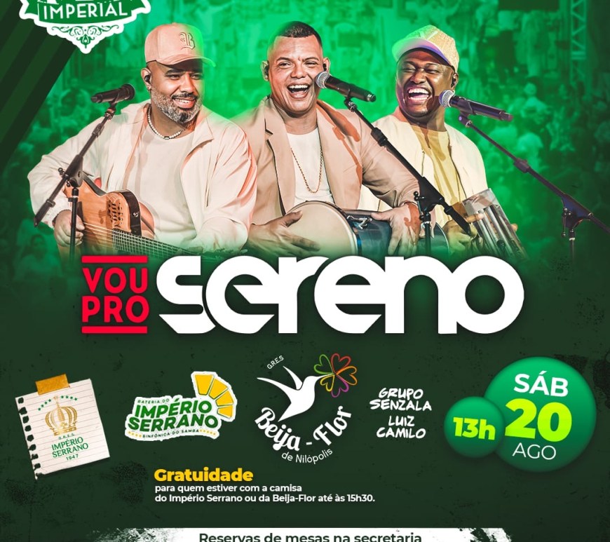 Vou Pro Sereno e Beija-Flor são as atrações da Feijoada Imperial de sábado (20)