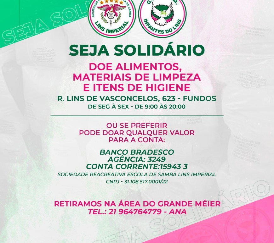 Desde o início da Pandemia, Lins Imperial e Infantes do Lins juntas vêm adotando ações que visam diminuir o drama social causado pelo vírus. Em março, escola mãe e filha lançaram a campanha “Seja Solidário” que contribuiu para a alimentação de mais de 500 famílias através da distribuição de cestas básicas. A solidariedade das duas escolas de samba foi além e em seguida surgiu mais … Continuar lendo Lins Imperial e Infantes do Lins distribuem 1.000 quentinhas para moradores de rua da região do Méier
